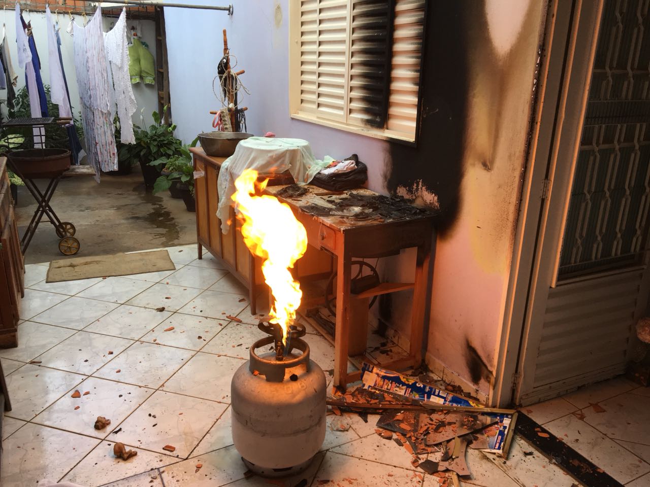 Segundo informações prestadas pelos próprios Bombeiros, o incêndio no gás de cozinha foi inciado devido ao aquecimento da válvula de alívio ter se rompido, liberando gás e provocando as chamas que chegaram a atingir a madeira do telhado da área de serviço da casa.