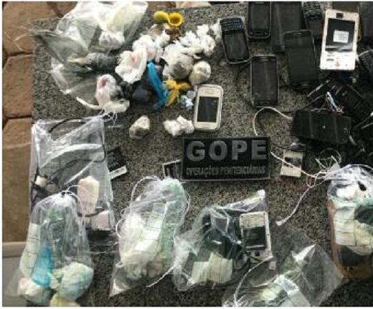 Uma operação de revista na Unidade Prisional de Catalão, que contou com a Integração do GOPE, GIT/Entorno, GIT/Caldas, regional sudeste e de servidores da própria Unidade de Catalão, foram realizadas revistas nas alas A, B e D, onde foi possível a apreensão de 33 Celulares, 17 porções de substância entorpecente aparentemente maconha totalizando 672,9 gramas e uma porção de substância branca aparentemente cocaína totalizando 34,4 gramas, além de 35 carregadores de aparelhos celulares.