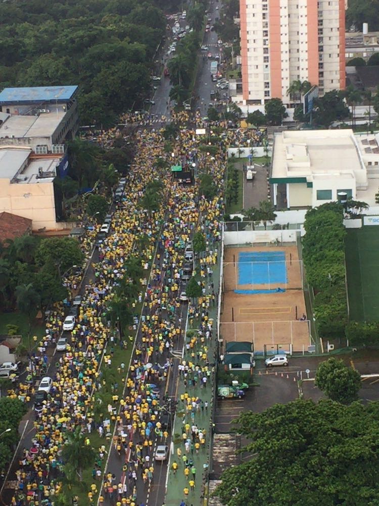 Segundo os organizadores do evento, cerca de 90 mil pessoas estavam presentes na manifestaçao que tinha objetivos claros: Pedir a saída da presidente Dilma, a prisão do ex-presidente Lula, apoio total as ações da Justiça Federal / do Ministério Público Federal e da Policia Federal.