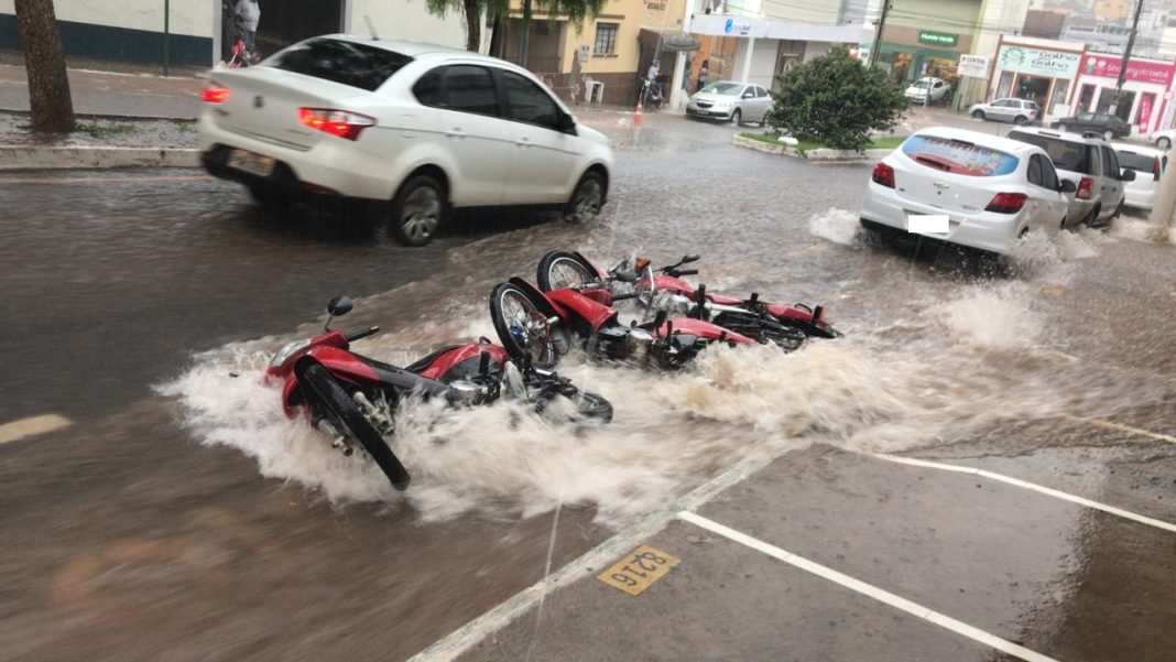Grande volume água em curto espaço de tempo em Catalão, no início da tarde de ontem, gerou alguns alagamentos. Prefeitura de Catalão disse que fará estudos no período de estiagem para eliminar problemas. Foto: Leitor/Reprodução