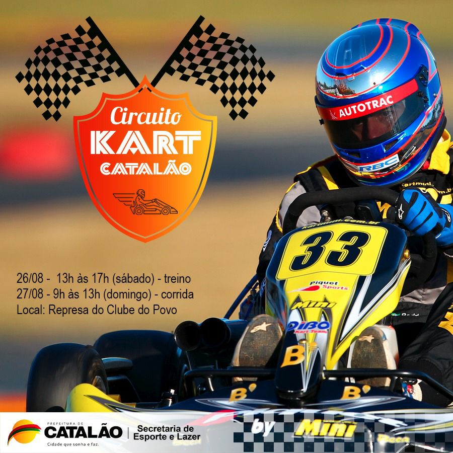 A Prefeitura Municipal de Catalão, através da Secretaria de Esporte e Lazer, vai realizar no próximo fim de semana o Circuito Kart, que é de alta velocidade para os pequenos carros de corrida, que podem chegar até 120 km/h. O percurso terá 900 metros e será montado na parte superior da represa do Clube do Povo. Este será um circuito específico para Catalão, com o envolvimento de mais de cem pessoas entre pilotos, mecânicos, organizadores. Os pilotos são do Distrito Federal e de Goiás, inclusive Catalão estará representada por Gilberto Amado (catalano apaixonado por este esporte).
