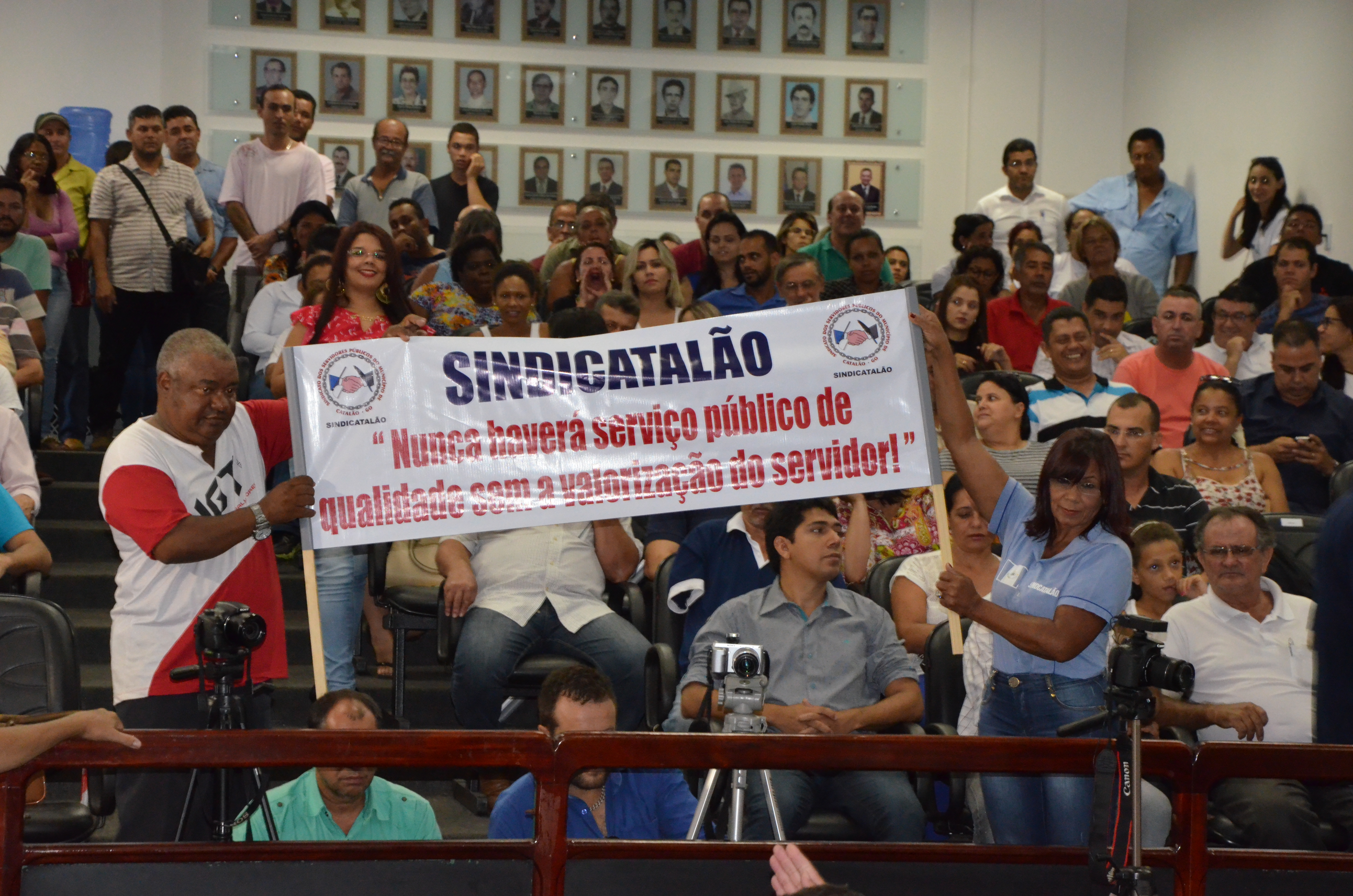 O presidente do Sindicato dos Servidores Públicos do Município de Catalão (SindiCatalã), Fernando Gomes dos Reis, que estava acompanhado da Professora Bete na sessão, estenderam uma faixa com os dizeres: “Nunca haverá serviço público de qualidade sem a valorização do servidor!”