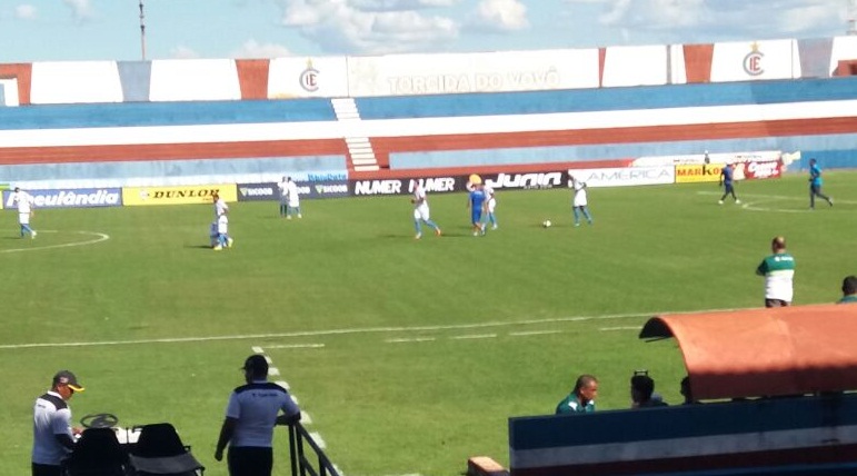 A partida não começou como o esperado para o Verdão do Sudoeste. A equipe comandada por Edson Porto foi dominada em todo o primeiro tempo. Sem conseguir criar e embaixo de um forte calor, o Crac comandou a partida até abrir o placar, aos 36 minutos do primeiro tempo, com o atacante Frontini, ex-Vila Nova, em cobrança de pênalti.