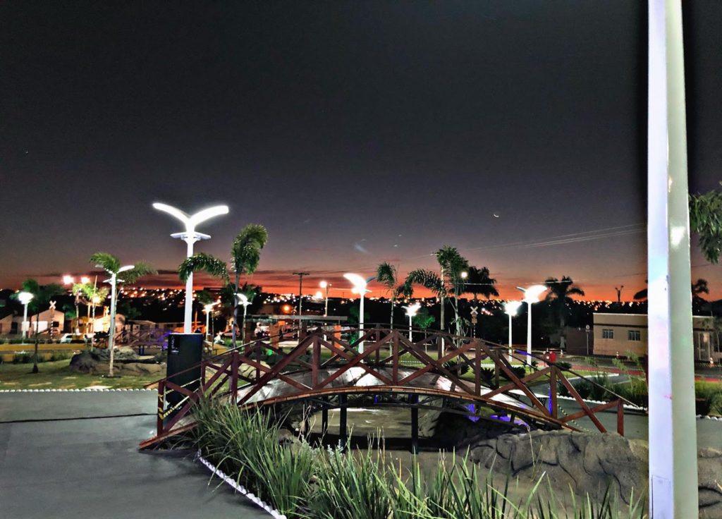 O local conta com fontes luminosas, uma cascata com um córrego artificial, pergolados, aparelhos de playground, assentos, e até uma hamburgueria.