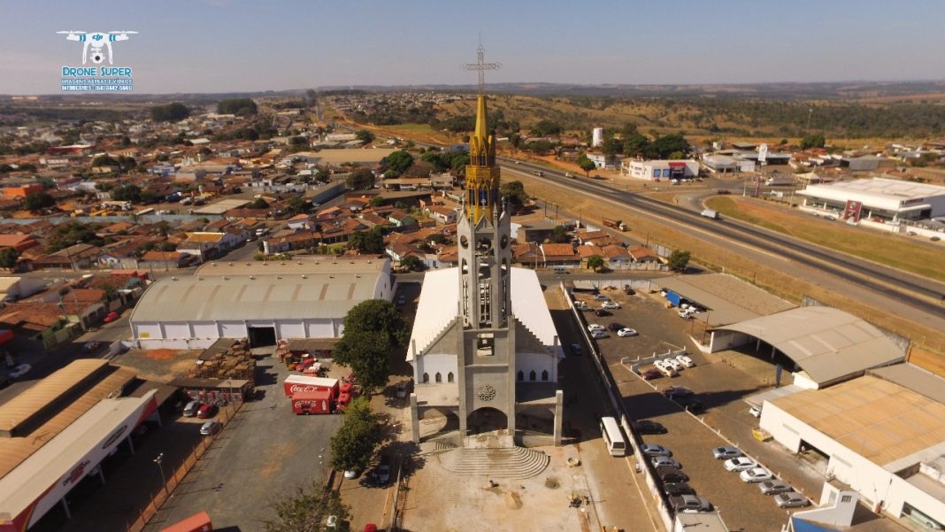 Torre da nova Matriz São Francisco de Assis tem 60 metros de altura. (Foto: Drone Super).