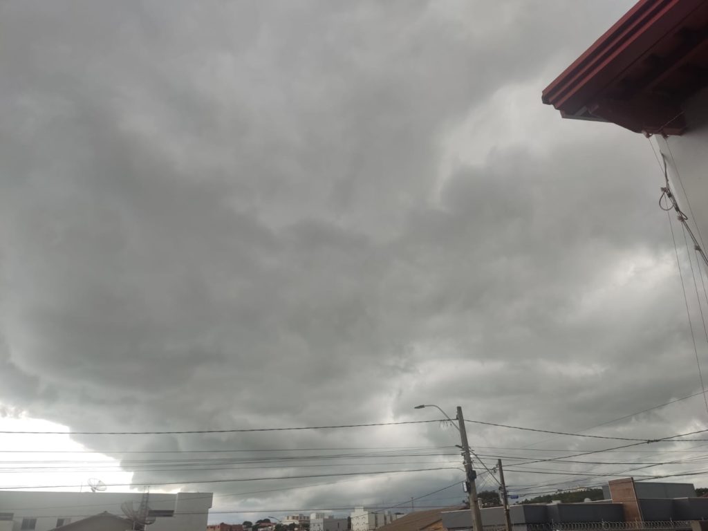 Nuvens bastante carregadas sob a cidade de Catalão, em imagem registrada na Rua Antônio da Costa Neves, no bairro Santa Helna 2. Foto: Badiinho Moisés