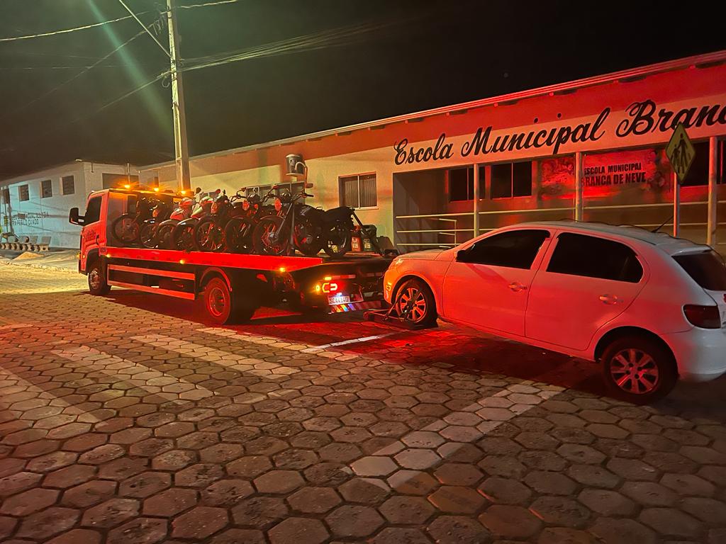 Ao todo, foram apreendidas sete motocicletas e um veículo de passeio por diversas irregularidades. Além disso, foram lavrados dois Boletins de Ocorrência Circunstanciados (BOC) porque menores de idade estavam conduzindo veículos, quatro Termos Circunstanciados de Ocorrência (TCOs) por veículo conduzido sem CNH e uma pessoa foi conduzido à delegacia por suspeita de crime de adulteração de sinal identificador de veículo automotor.