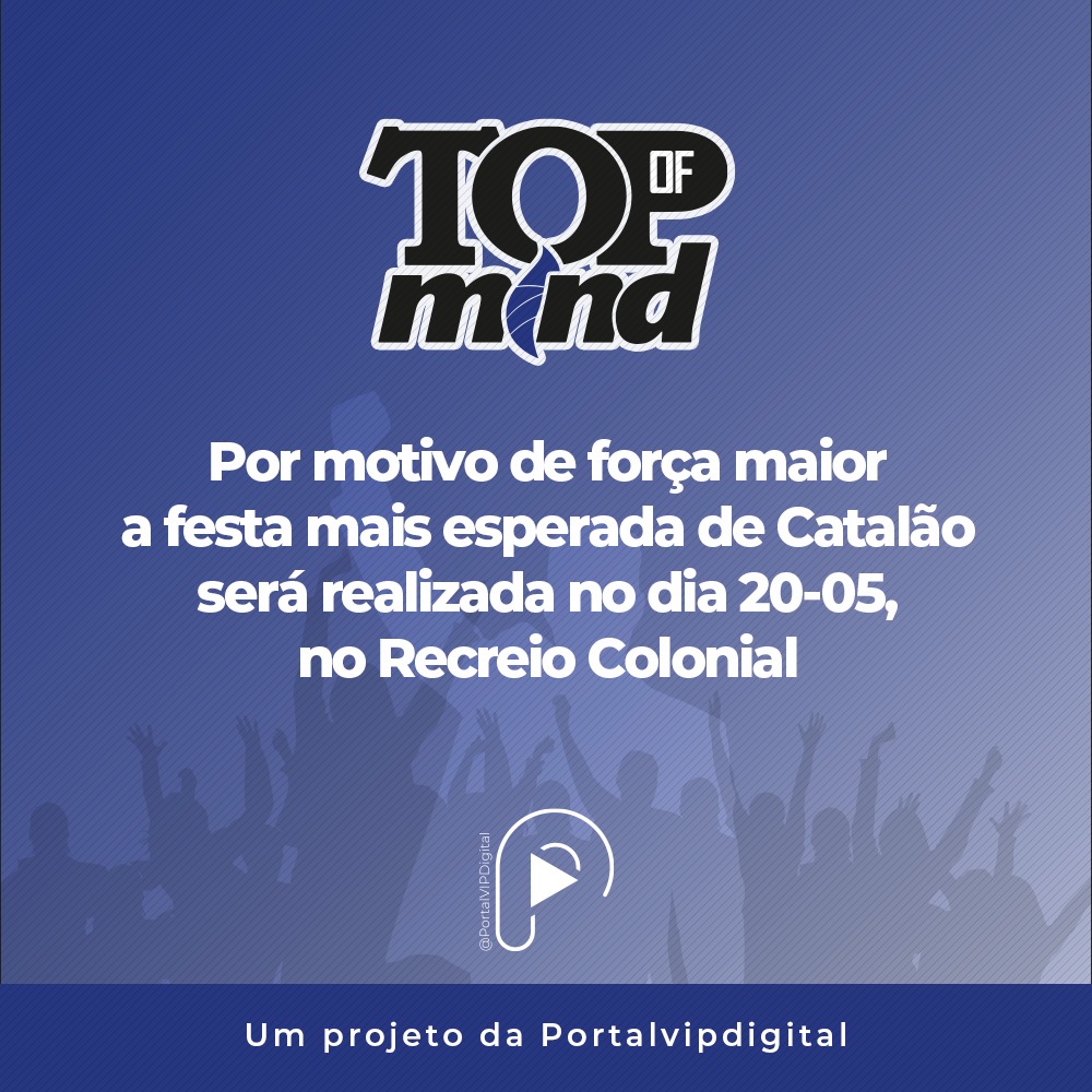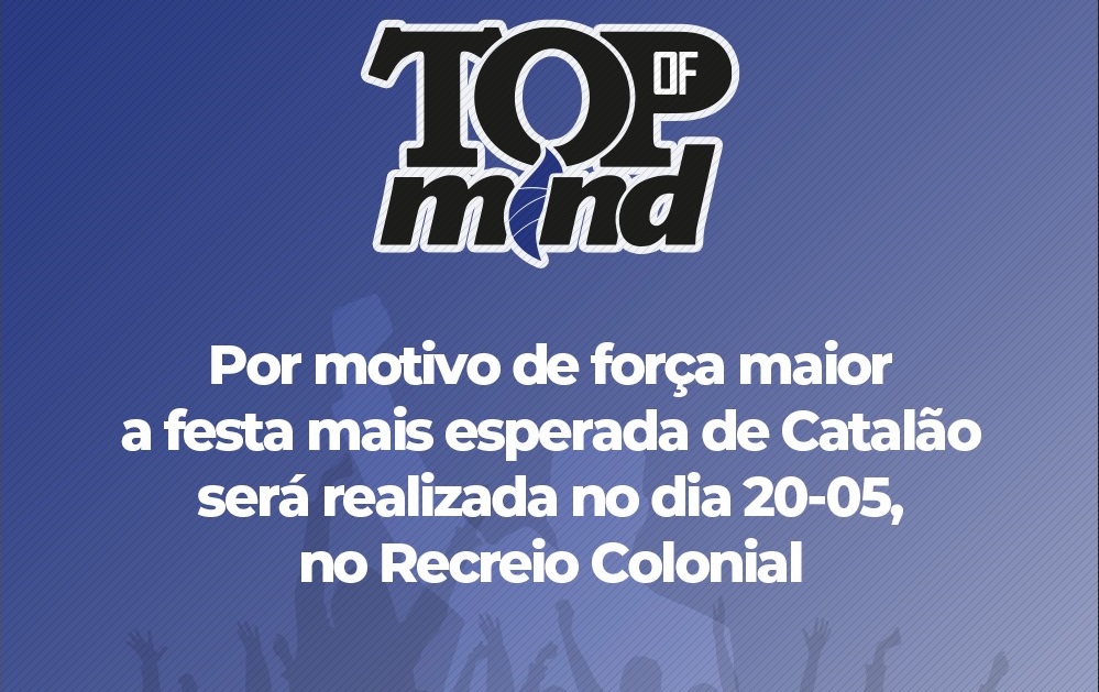 A revista Portal VIP comunica que a festa de premiação das marcas mais lembradas de Catalão, Top of Mind, precisou ser adiada tendo em vista motivos de força maior.