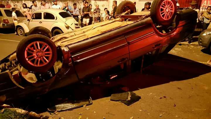 O acidente aconteceu na Avenida Irapuã Costa Júnior, no Centro de Ouvidor, quando o condutor de um VW Santana perdeu o controle e capotou.