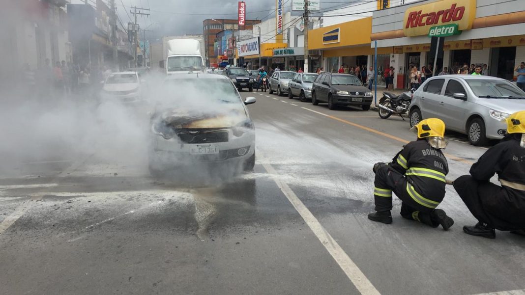 Corpo de Bombeiros de Catalão combate incêndio em veículo de passeio no centro de Catalão