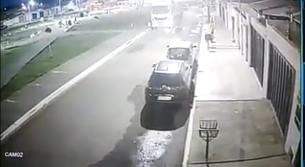 Uma câmera de monitoramento flagrou o momento exato em que uma criança de idade não informada foi atropelada na Rua João Emídio Pereira, no Loteamento Estrela, próximo a praça. O fato aconteceu logo no início da noite de ontem, quinta-feira (26), por volta das 19 horas.