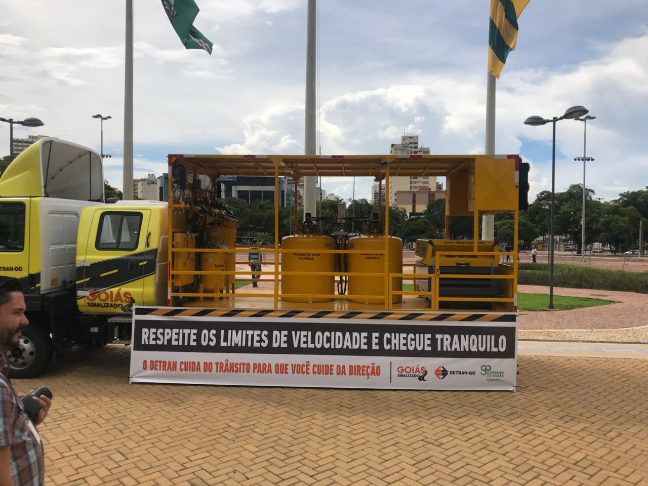 No Palácio das Esmeraldas, o governador Marconi Perillo em parceria com o Detran, lanço o Goiás Sinalizado e fez a entrega de três caminhões sinalizadores. O programa reúne uma série de ações que terão impacto positivo e imediato no dia a dia do condutor goiano.