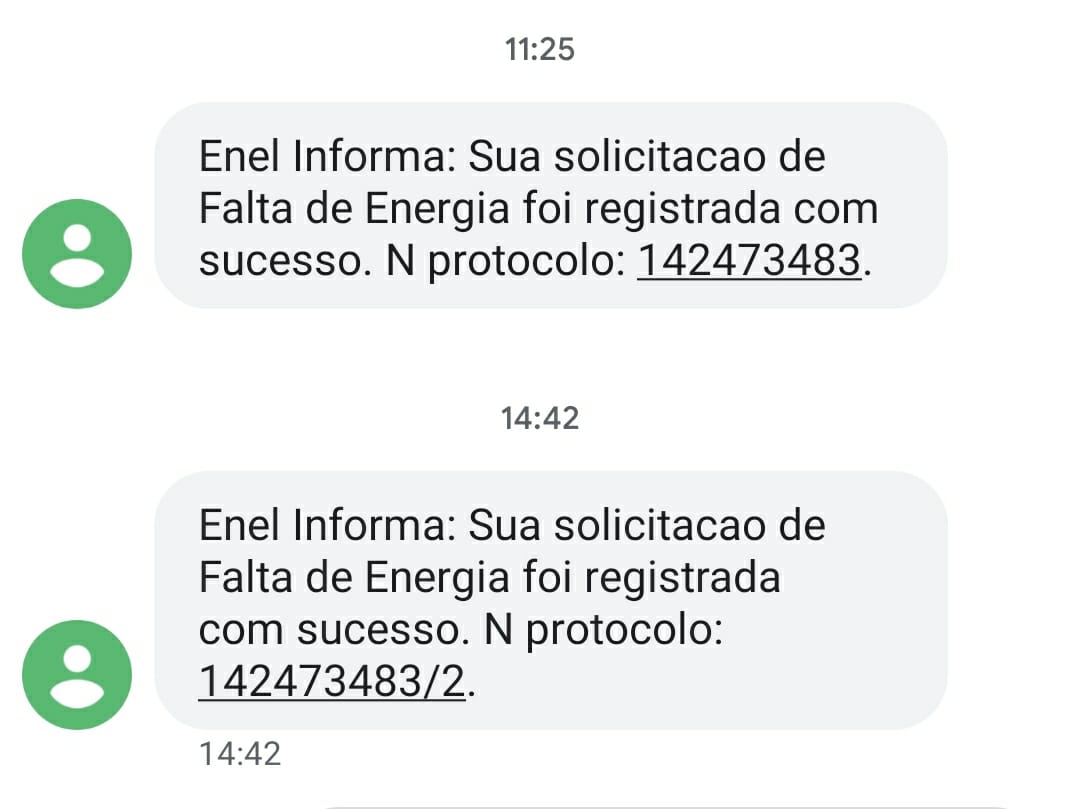 O denunciante também enviou dois dos diversos protocolos abertos para resolver o problema da falta de energia nas comunidades, porém, a Enel Goiás continua tratando os seus clientes com muito descaso e desrespeito, dando a mínima para o tempo resposta para reestabelecimento do fornecimento de energia, principalmente nas comunidades rurais da região sudeste, como relataram os moradores da Pedra Branca e Olhos D’água, que afirmam que as interrupções estão acontecendo por lá com muita frequência.