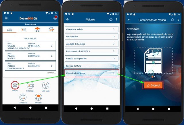 O Comunicado de Venda é um procedimento gratuito que pode ser feito em qualquer unidade do Vapt Vupt ou Ciretran. Agora, o aplicativo Detran GO ON também está preparado para receber as solicitações. O interessado em fazer o Comunicado presencialmente deve procurar uma unidade de atendimento munido de documento de identificação e cópia autenticada do CRV, já preenchido e com firma reconhecida nas assinaturas do vendedor e do comprador.