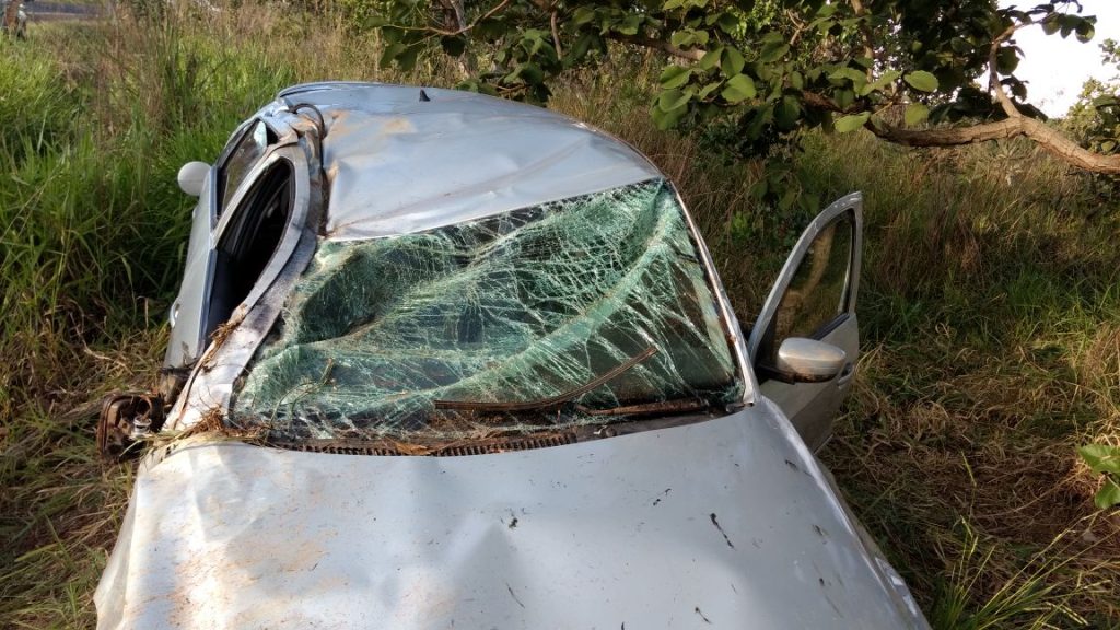 Mulher dorme ao volante, veículo saí da pista e capota em seguida