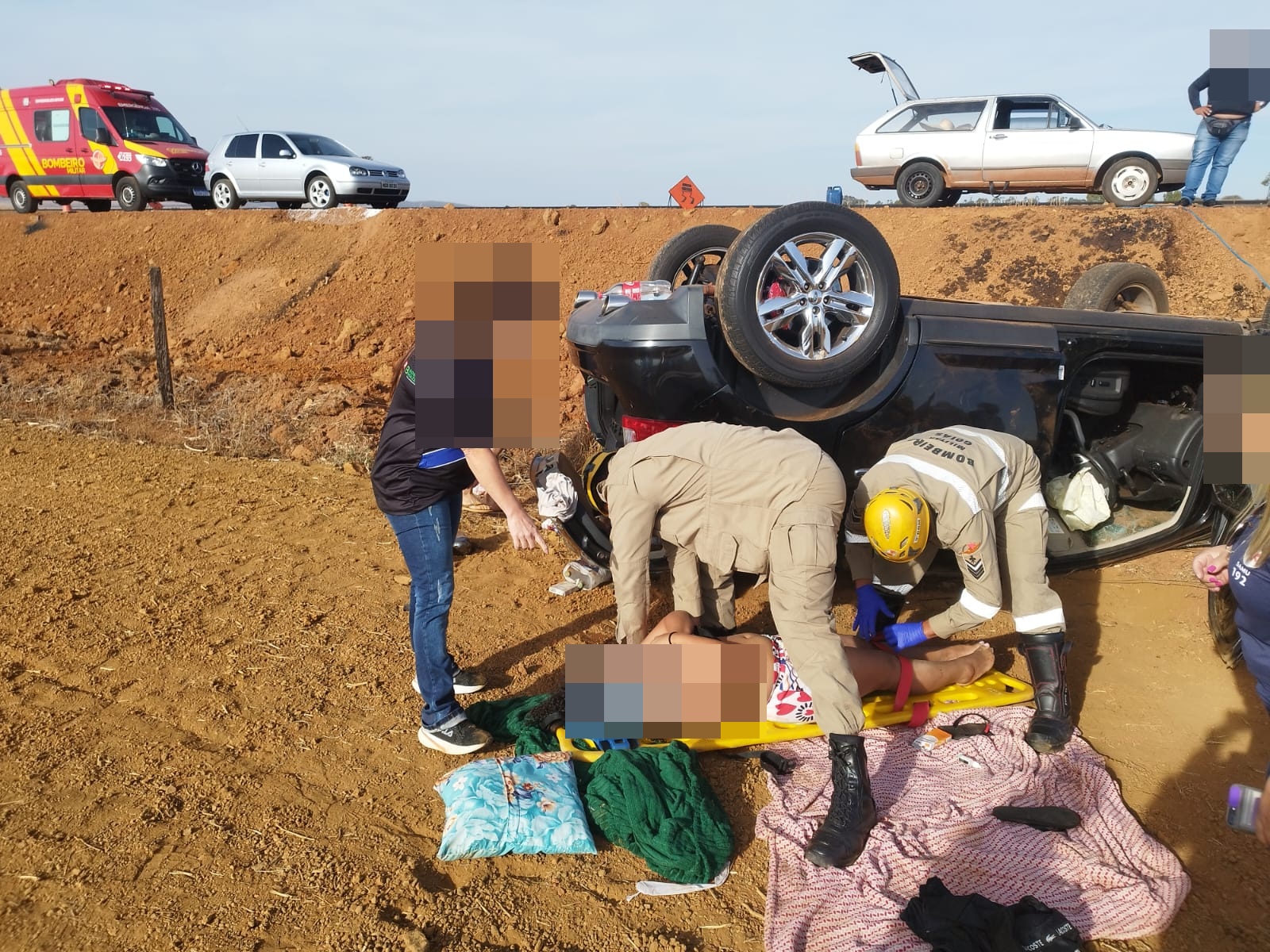 Por volta das 8h30, na GO-139, entre Caldas Novas e Piracanjuba, um carro saiu da pista e capotou. Equipes do 9º Batalhão de Bombeiros Militar (9º BBM) e do Serviço de Atendimento Móvel de Urgência (SAMU) atenderam os três ocupantes.