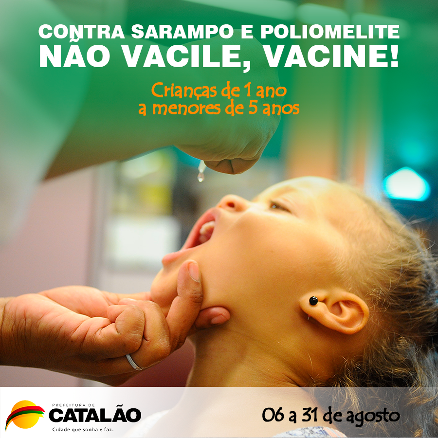 Começou hoje (6) e vai até o fim do mês (dia 31 de agosto) a Campanha Nacional de Vacinação contra a Poliomielite e Sarampo. Em Catalão as doses já estão disponíveis gratuitamente nas unidades de saúde.