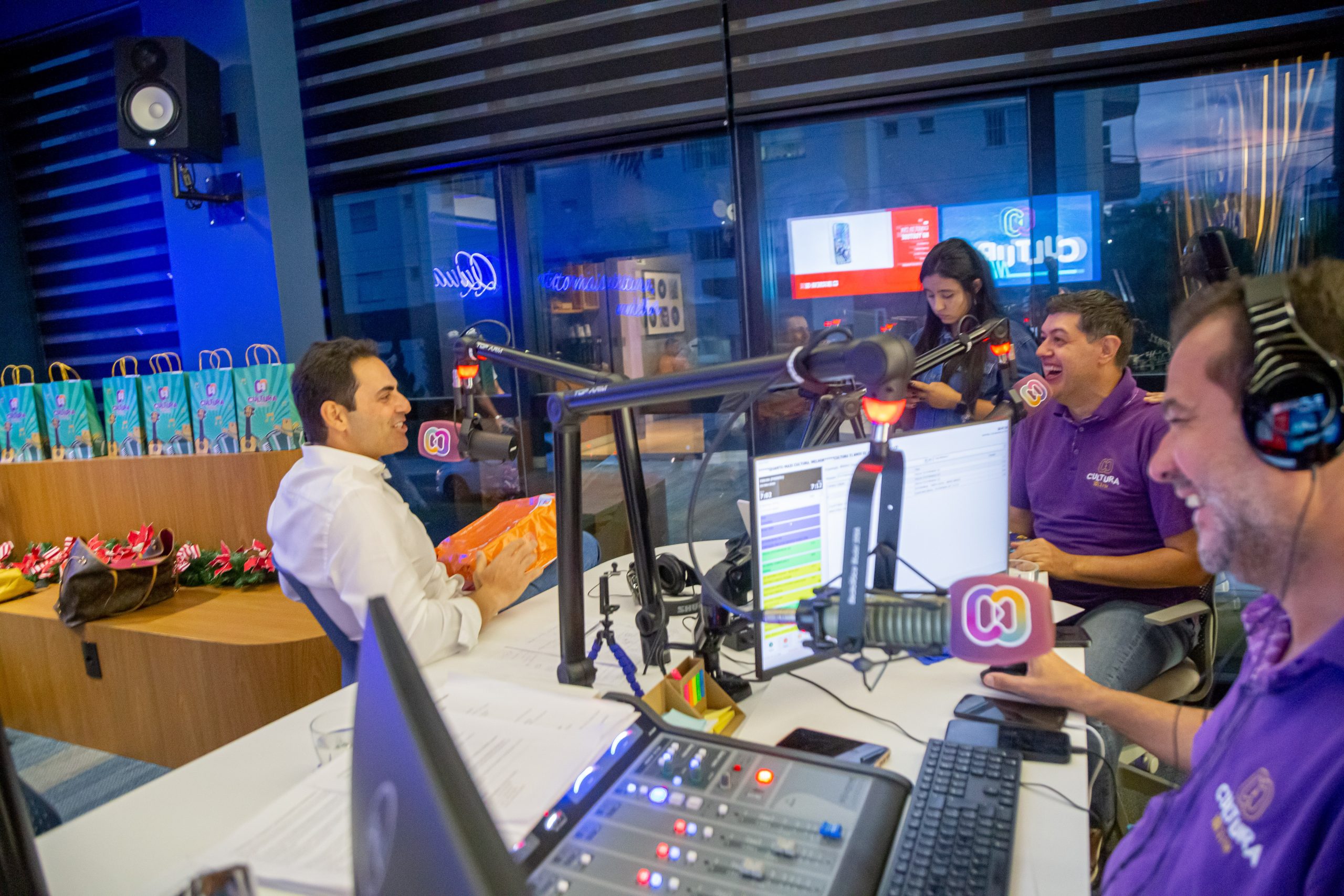 Deputado Jamil Calife (PP) em momento de descontração com o âncora do Cultura News, Fernando Garcia e com o Assis Humberto. Foto: Lucas Machado