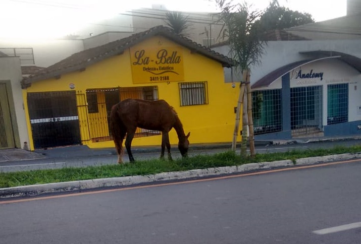 Dois animais equinos foram flagrados por um internauta fazendo uma refeição matinal no canteiro central da Avenida São João, abaixo do Colégio Estadual Dona Iayá, umas das principais e movimentadas avenidas do bairro São João.
