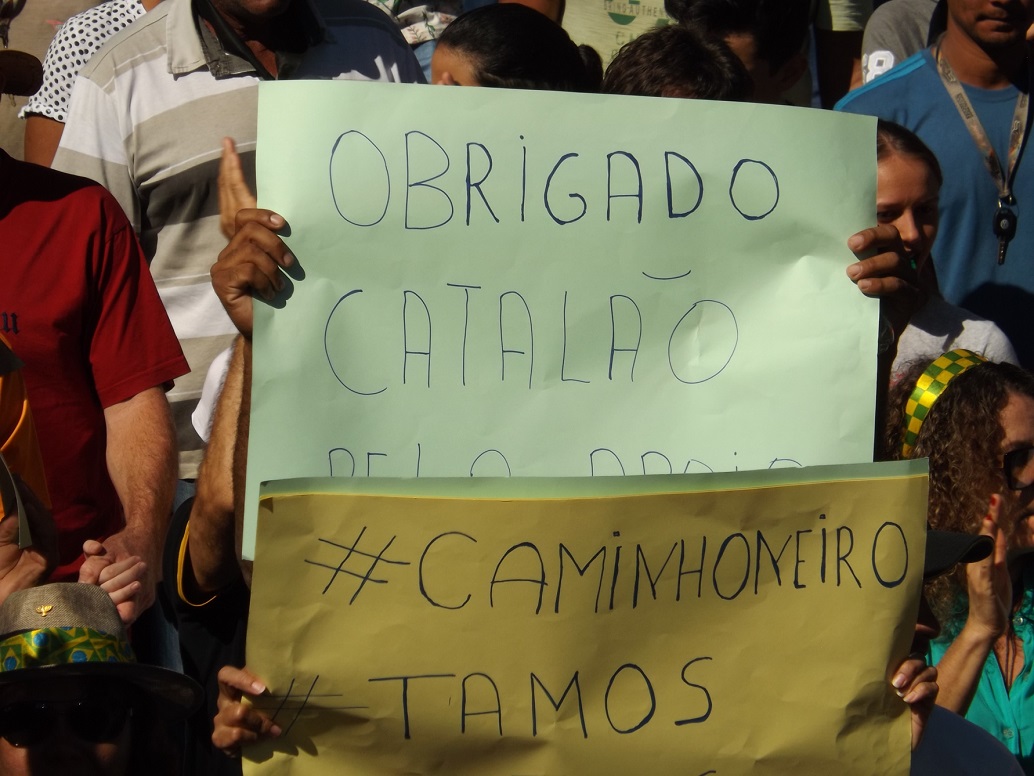 Para quem achou que os caminhoneiros de Catalão se renderiam as intimidações impostas pelo Governo Federal, principalmente após o anúncio do Presidente Michel Temer, de que as forças armadas seriam usadas para desfazer bloqueios e assim obrigarem os caminhoneiros autônomos a rodarem, o que vimos, foi a situação no país se agravar ainda mais, pois a estratégia de quererem classificar os caminhoneiros como bandidos, revoltou mais ainda a população brasileira, e se eles já estavam sendo solidários com os caminhoneiros, hoje de manhã, a população catalana vestidas com roupas em verde e amarelo, com bandeiras do Brasil, balões e cartazes nas mãos, foram para as ruas da cidade junto com os caminhoneiros.