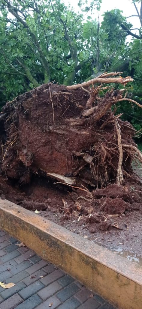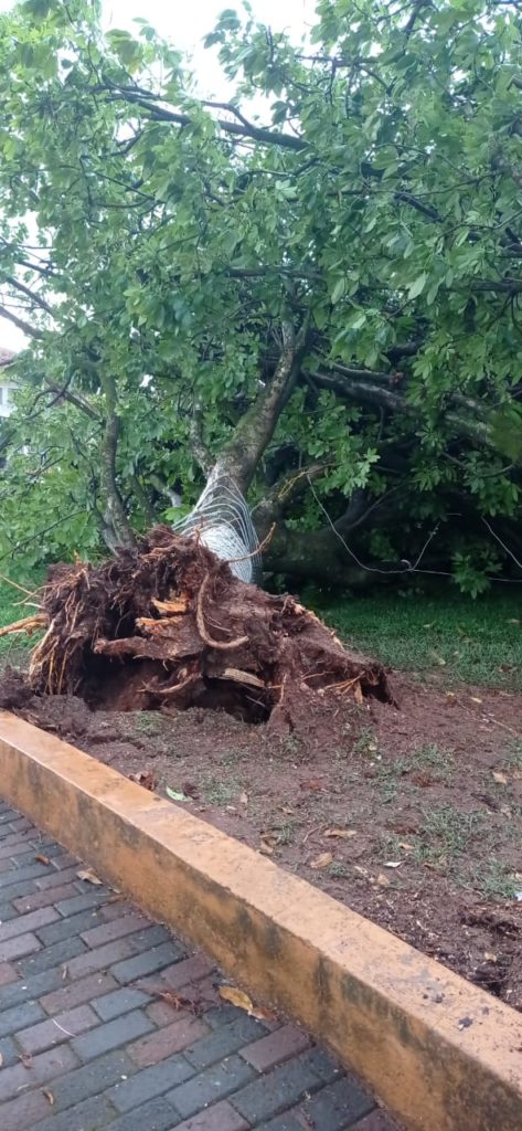 Felizmente ninguém se feriu, e por sorte, nenhum veículo estavam debaixo das árvores.