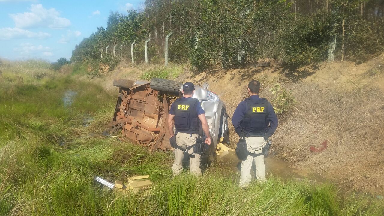 Após acompanhamento tático por cerca de 40 km, o veículo entrou na cidade de Jataí e em seguida pegou a BR 060, seguindo no sentido Rio Verde, quando o condutor perdeu o controle de direção e capotou o carro.