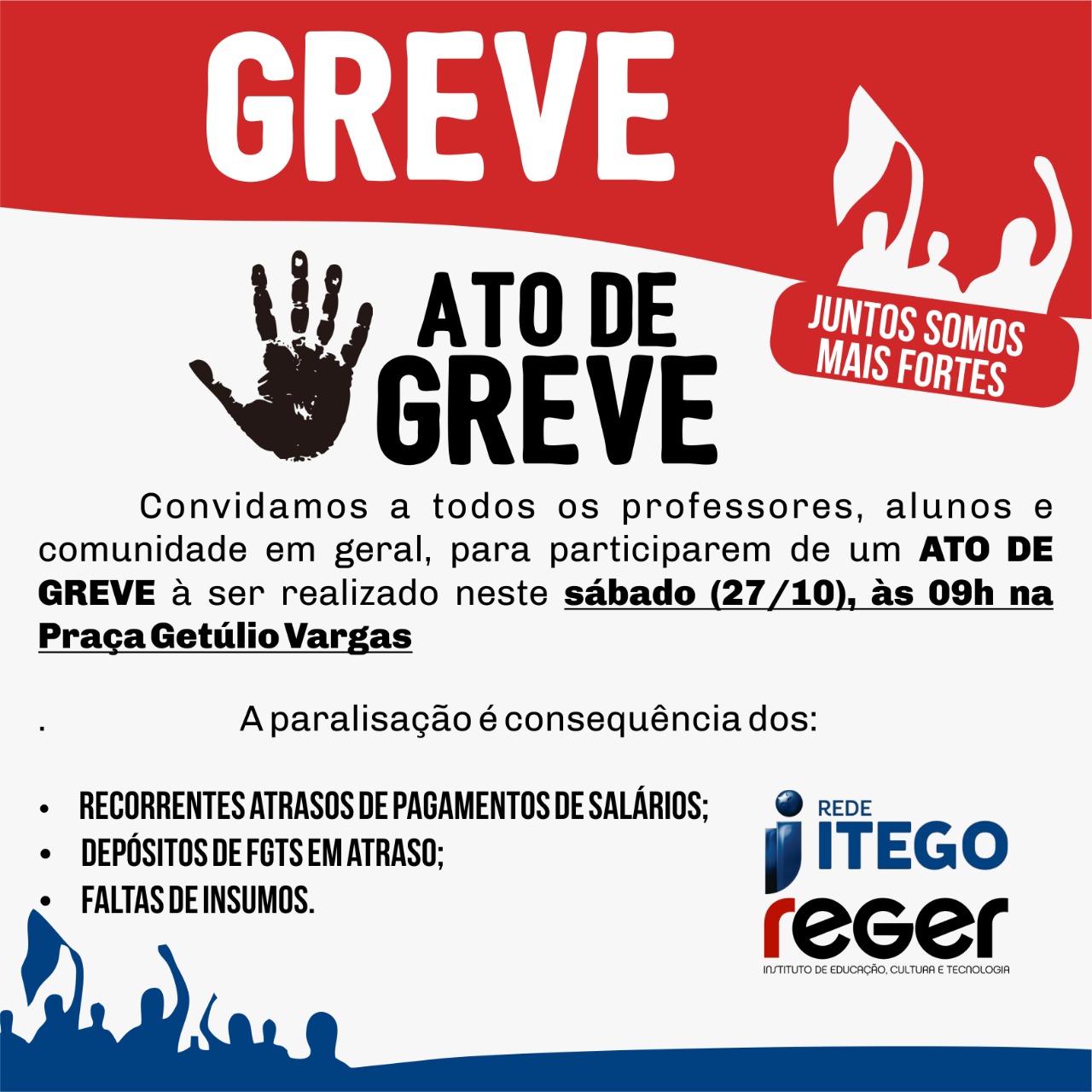 Em greve desde o último dia 16 deste mês de outubro, a comissão de greve do Instituto Tecnológico do Estado de Goiás Aguinaldo Campos Netto, enviou nota para a redação do Blog do Badiinho comunicando a paralisação das atividades do instituto.