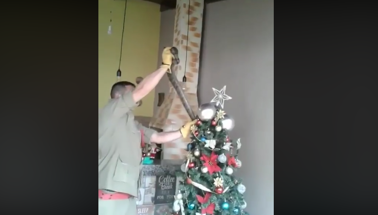 Em Inhumas, criança encontra jiboia em árvore de natal