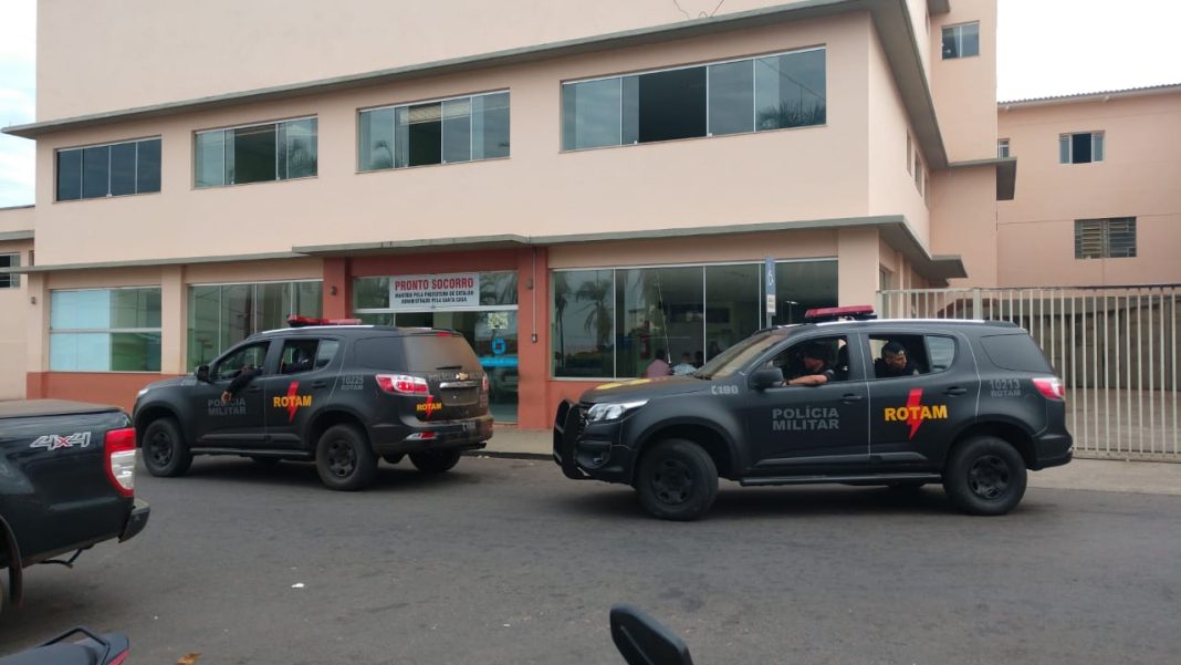 Viaturas da ROTAM de Goiânia na porta do Pronto Socorro da Santa Casa de Catalão. Foto: Zap Catalão/Reprodução