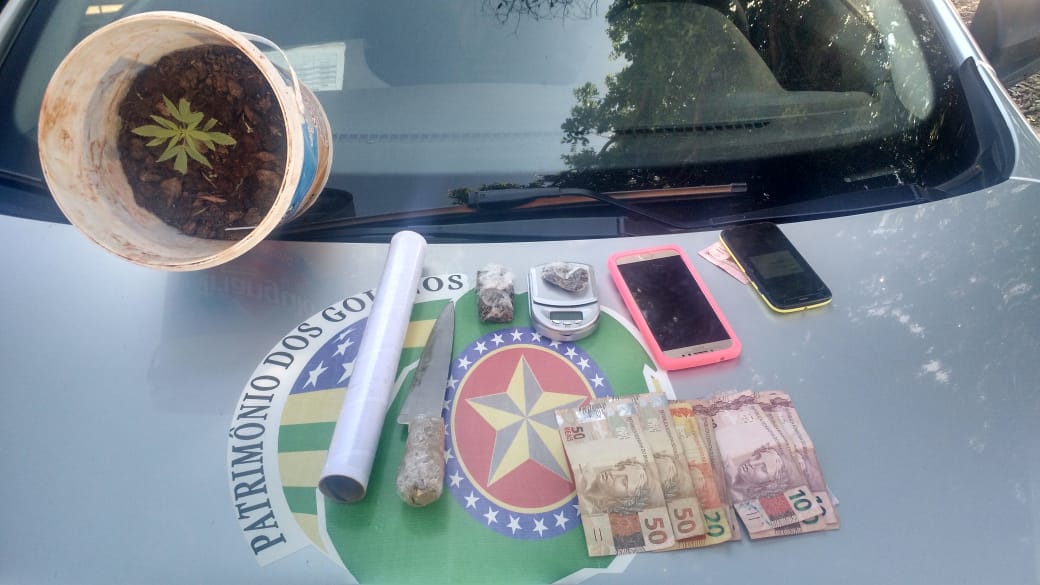 Nas residências foram encontradas mais porções de maconha, uma balança precisão, uma faca e um rolo de plástico filme, utilizado para embalar drogas, além de celulares e dinheiro, que a polícia suspeita ser provenientes do tráfico de drogas.