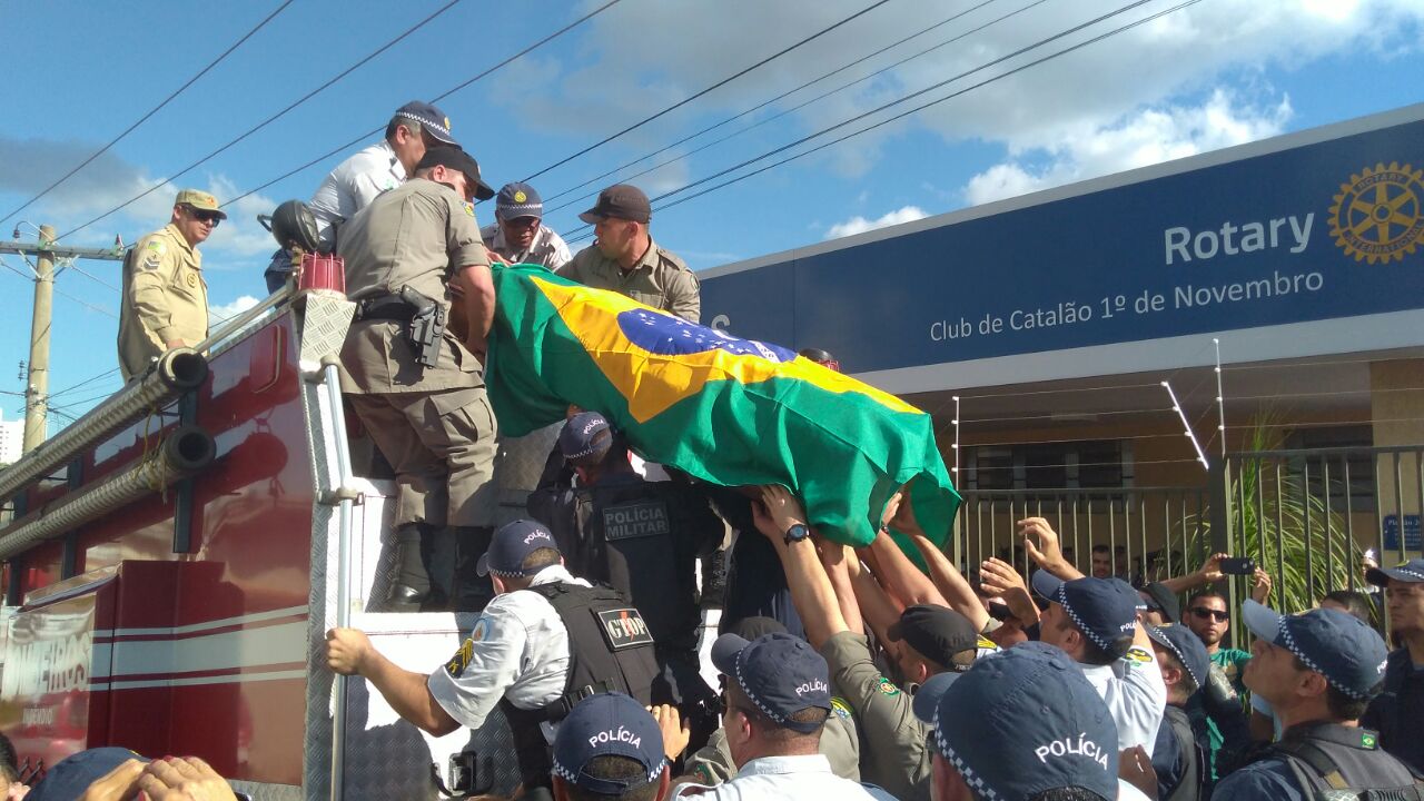 ?Enterro do policial militar morto em tentativa de assalto é marcado pela emoção nas homenagens prestadas pelas forças policias de Catalão Goiás e do Distrito Federal