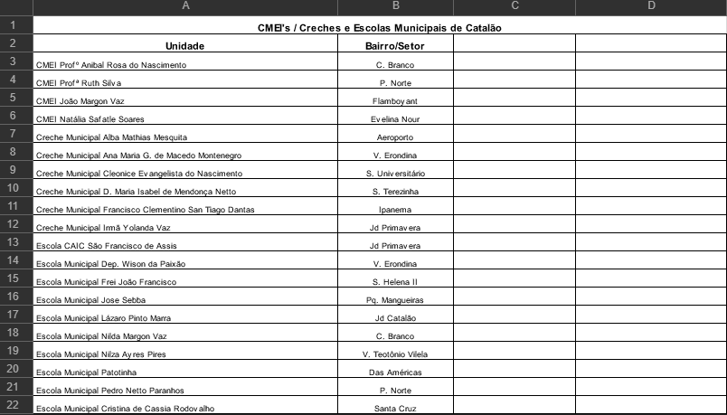 Leiam abaixo a lista das Escolas e Creches municipais de Catalão, e saiba qual está mais perto de você: