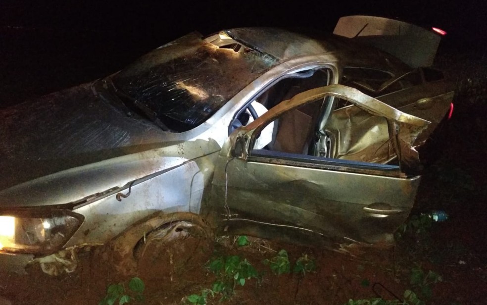 Criança também morreu, mas, de acordo com o Instituto Médico Legal, a causa foi o afogamento, e não o capotamento. Carro em que mãe e filho estavam capotou em rodovia de Buriti Alegre, Goiás — Foto: TV Anhanguera/Reprodução