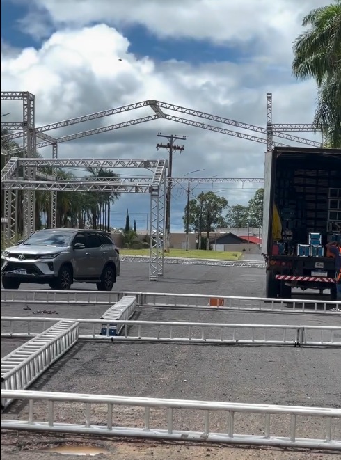 Estrutura para o carnaval em Três Ranchos começou a ser montada na semana passada. Foto: Captura de tela/Instragram