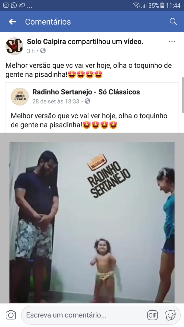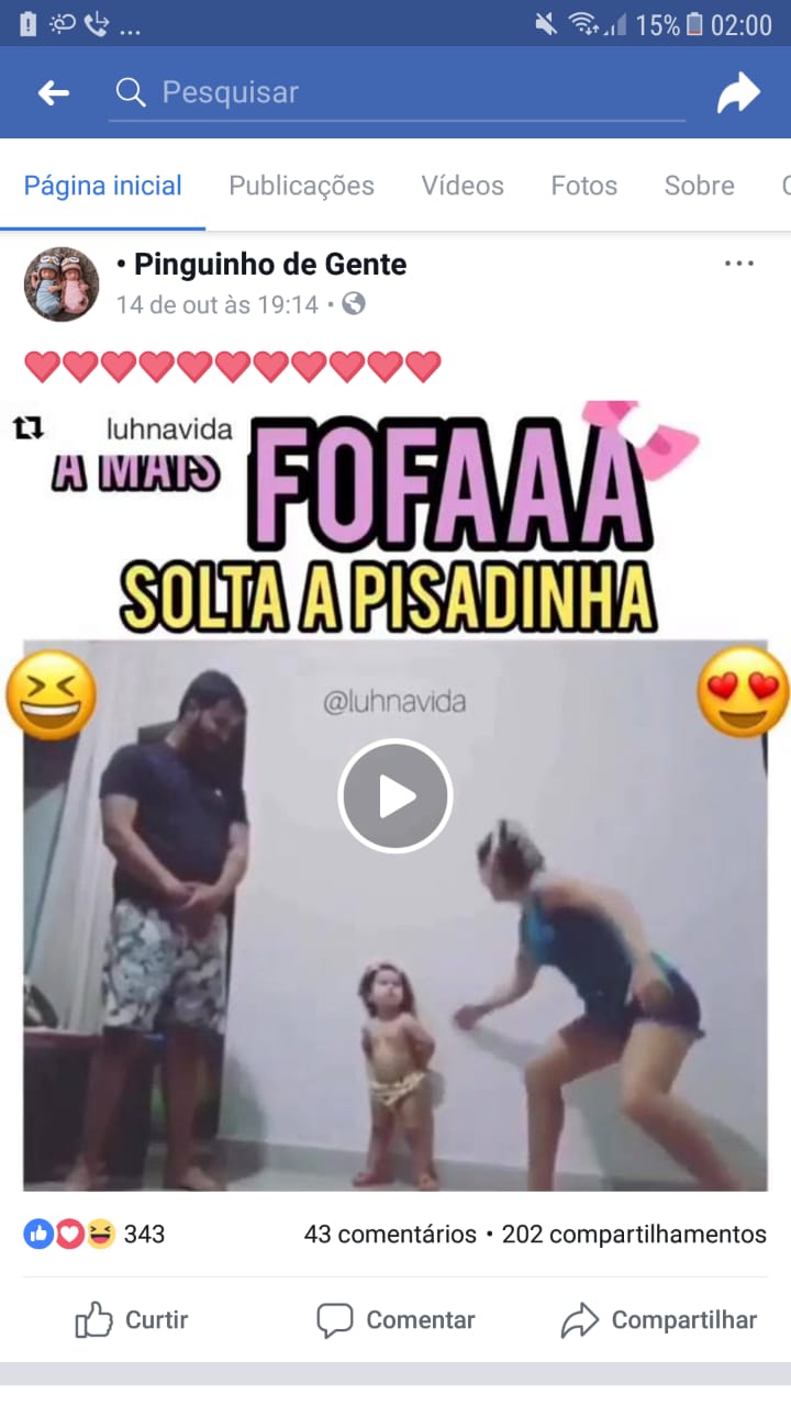 O mais impressionante são os números da publicação, a qual foi feita no dia 26 de setembro deste ano, com o seguinte título: “A versão mais fofa que você vai ver hoje”, que mostra pai, mãe e filha dançando o hit Pisadinha, que chegou aos 9,4 milhões de visualizações, 569 mil likes, 22 mil cometários e 150.993 compartilhamentos. Isso mesmo, o vídeo já foi compartilhado quase 151 mil vezes até a manhã desta terça-feira, 13 de novembro. Assistam o vídeo: