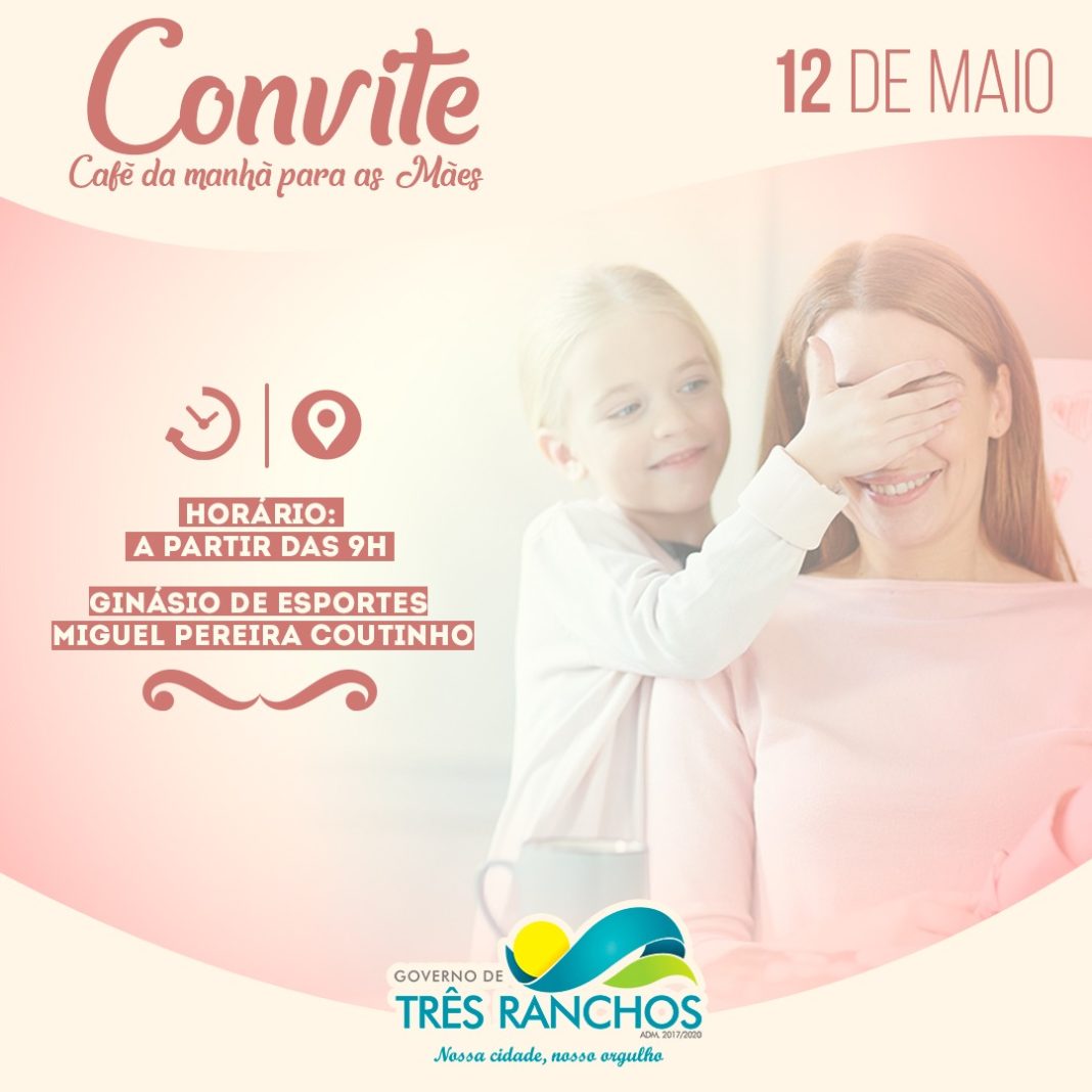 A prefeitura de Três Ranchos irá promover para mamães do município, um café da manhã especial com sorteio de vários brindes, a ser realizado a partir das 09 horas, no Ginásio Miguel Pereira Coutinho. Prefeito Hugo Deleon de Carvalho, convidou além das mamães trirranchenses, lideranças políticas da cidade do Lago Azul e o deputado estadual Gustavo Sebba (PSDB).