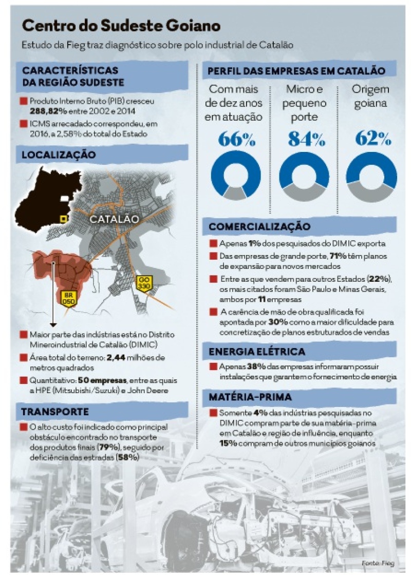 Com cerca de 50 indústrias, entre elas montadoras de veículos e máquinas agrícolas e empresas de grande porte do ramo mineração e fertilizantes, o polo industrial de Catalão é considerado atrativo pela localização e potencialidades.  Mas também enfrenta desafios comuns a outras regiões do Estado, como o alto custo para transporte, mesmo com a Ferrovia Centro-Atlântica (FCA), que leva mercadorias aos portos de Santos (SP) e de Tubarão, em Vitória (ES).