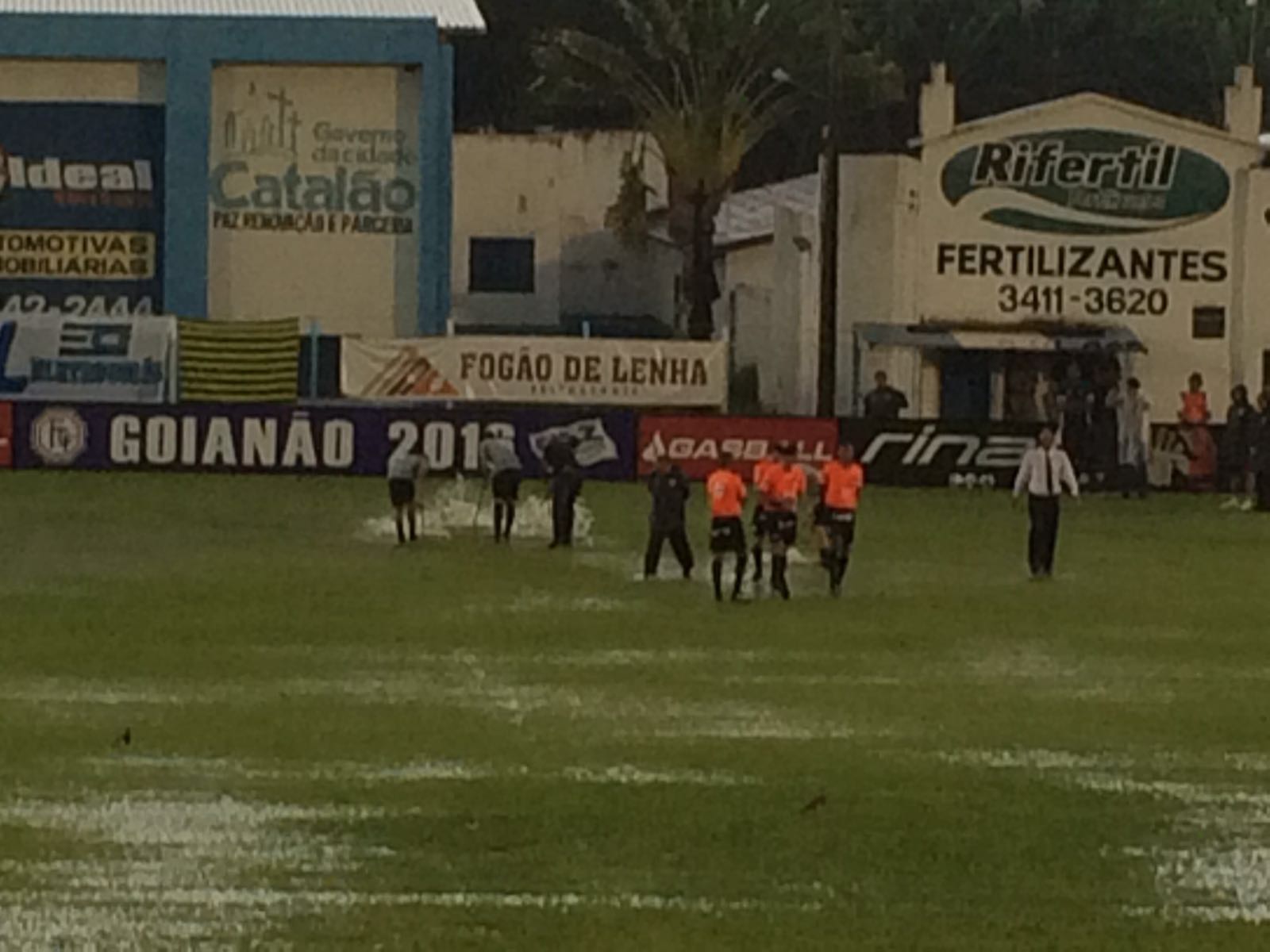 Aos 26 minutos do primeiro tempo da partida que acontecia na tarde ontem domingo, 28, entre Crac e Atlético GO no estádio Genervino da Fonseca, em que as equipes estavam empatadas em zero a zero, devido o temporal que caia sobre a cidade de Catalão a mesma teve de ser adiada, pois o campo não tinha nenhuma condição para que os atletas prosseguissem com o futebol.