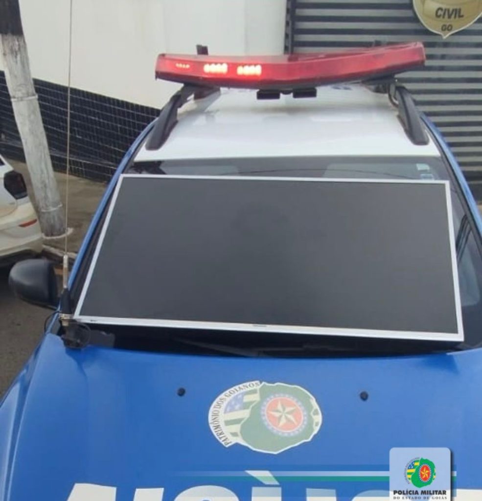 Durante o patrulhamento, a equipe recebeu a denúncia e se deslocou até o local. Ao abordar o suspeito, os policiais descobriram que a televisão havia sido furtada no bairro Santa Helena momentos antes.