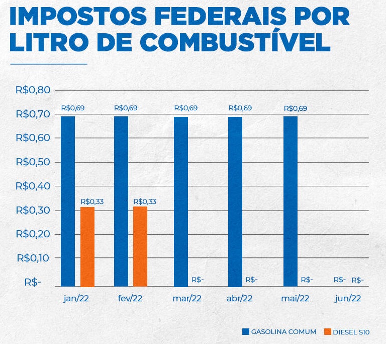 Em 2022, o governo Bolsonaro implementou medidas de redução de dois tributos federais que reduziram os valores. Com essa diminuição, a gasolina encerrou o ano passado com queda de 25%, custando R$ 4,96 na média nos postos do país.