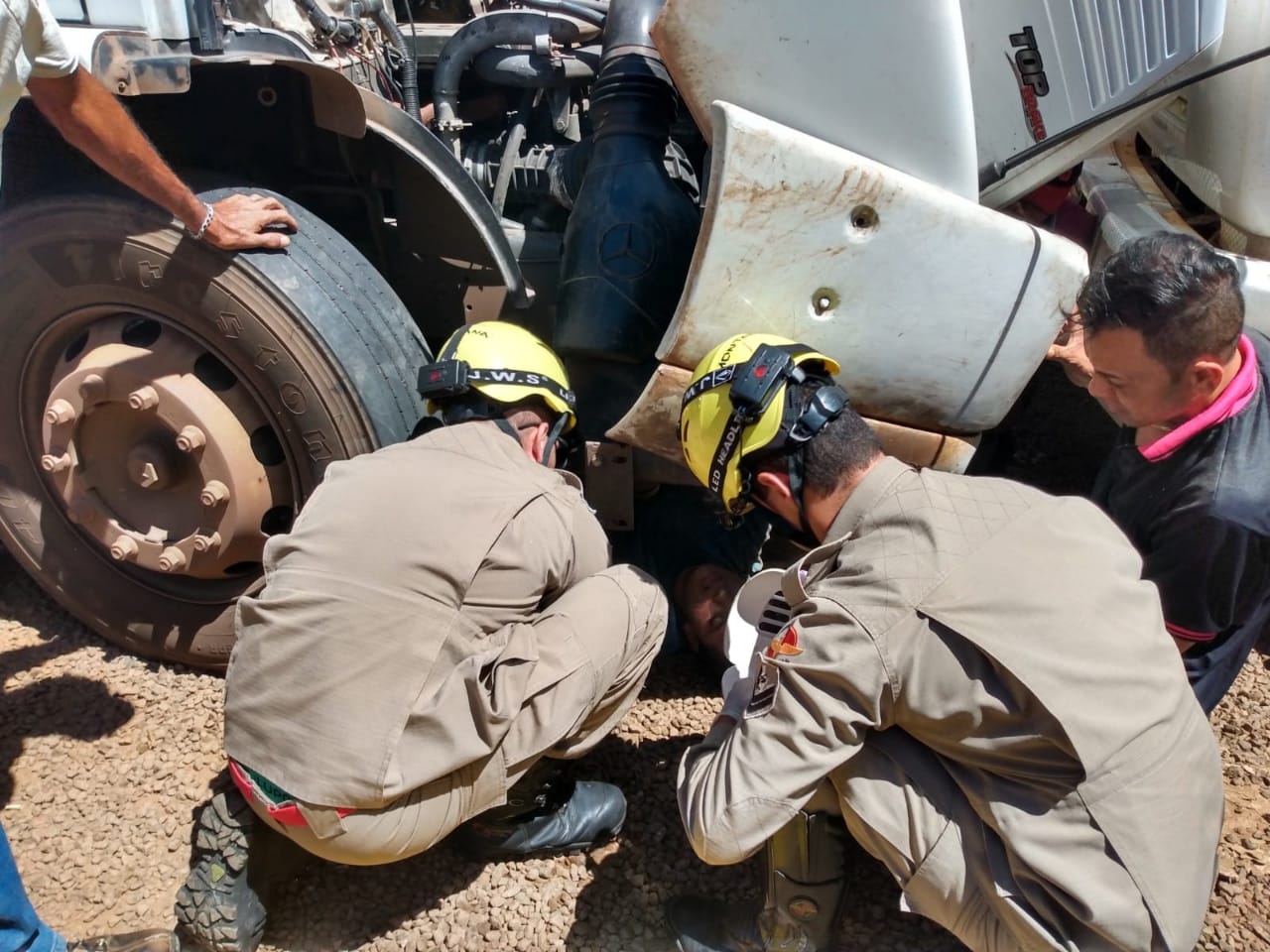 Em Ipameri, dois mecânicos se feriram quando realizavam o serviço de manutenção em baixo de um caminhão. O veículo cedeu e caiu em cima dos dois. Uma equipe do Corpo de Bombeiros de Ipameri, realizaram o resgate dos mecânicos, os quais estavam conscientes, porém, com suspeitas de fraturas na região pélvica e nos membros inferiores. Após atendimento hospitalar no local, os bombeiros levaram as vítimas para o hospital do município.