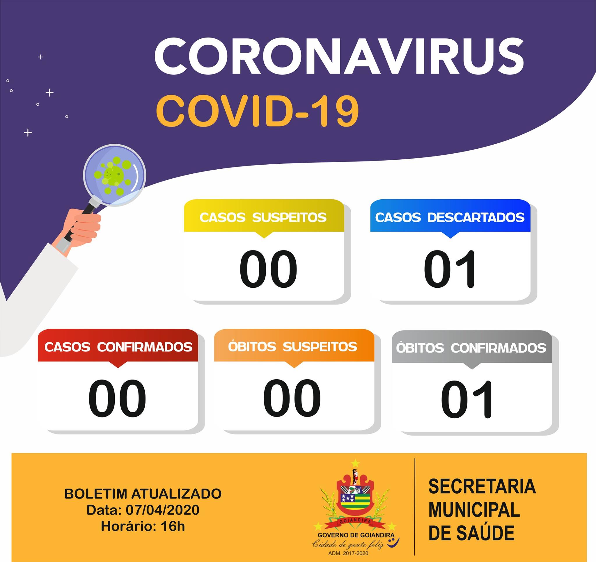 A Prefeitura Municipal de Goiandira, por meio da Secretaria Municipal de Saúde, vem a público noticiar e confirmar lamentavelmente o óbito por COVID-19 (Novo Coronavírus) do paciente do sexo masculino, de 73 anos, notificado na Santa Casa de Misericórdia de Catalão-GO, no dia 02/04/2020. O exame foi disponibilizado pelo LACEN Goiás no dia de hoje.