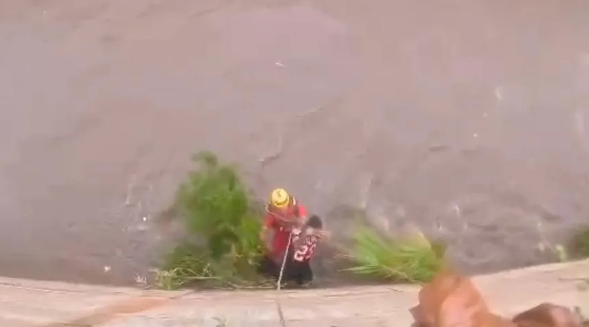 As equipes do Corpo de Bombeiros agiram rapidamente e iniciaram uma busca pelo córrego. Felizmente, os bombeiros conseguiram localizar uma vítima segurando no paredão da Marginal.
