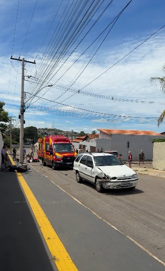 Um grave acidente entre um carro e uma motocicleta marcou a manhã desta terça-feira (13) na Rua Abdon Leite, em Catalão. A equipe do 10º Batalhão do Corpo de Bombeiros Militar (BBM) atendeu a ocorrência por volta das 10h32.
