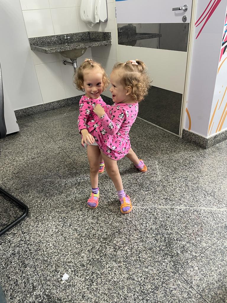 Muito alegres, Valentina e Eloá já estão ambientadas ao Hecad, hospital onde estão passando pela cirurgia de separação nesta quarta-feira (11/01). Foto: Reprodução/Vivian Duarte