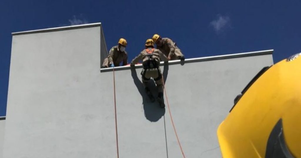 Os bombeiros fizeram os primeiros atendimentos, imobilizaram o homem e o desceram em uma maca até à viatura de resgate.