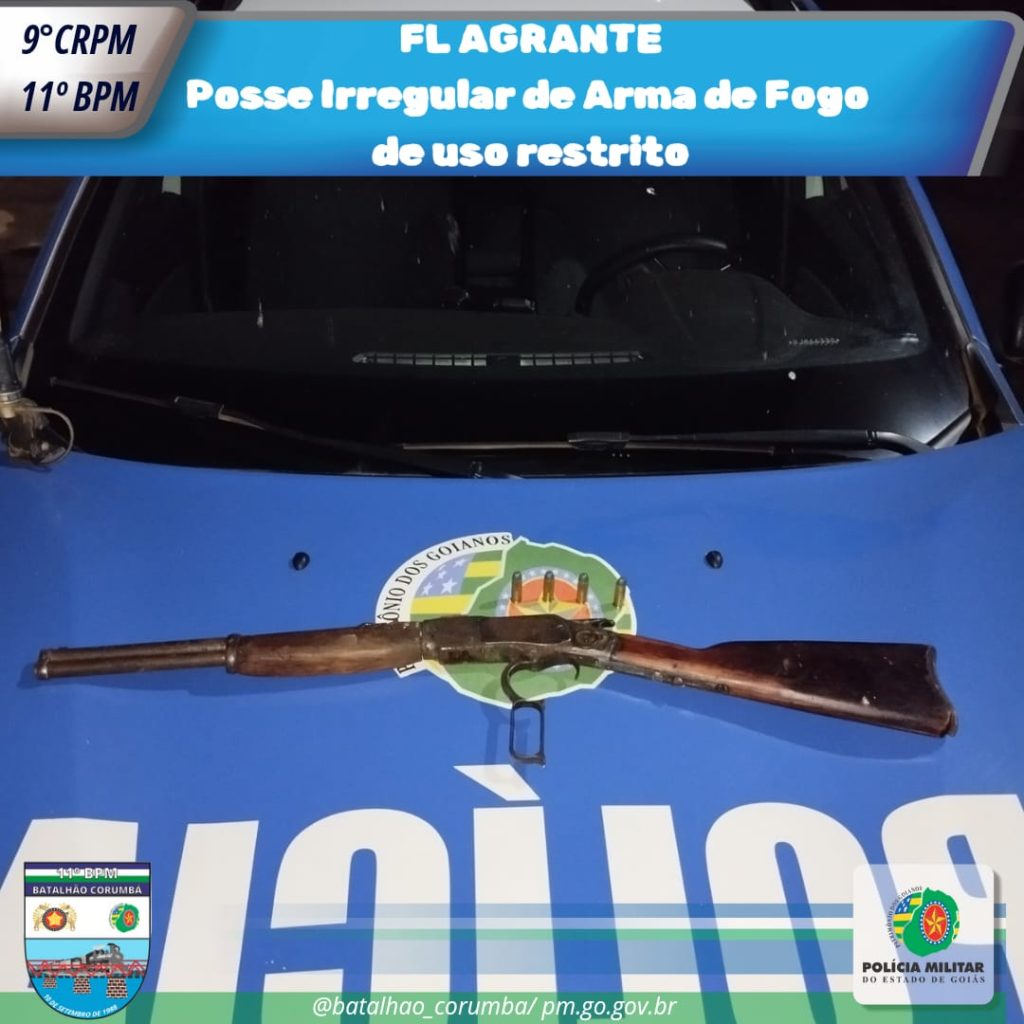 Na noite de ontem (27), a Polícia Militar de Pires do Rio (GO), atendeu uma denúncia sobre a posse irregular de uma arma de fogo de uso restrito. A situação veio à tona quando um homem foi flagrado ostentando, em suas redes sociais, uma foto de sua filha, uma criança de apenas um ano e três meses, ao lado de uma espingarda e várias munições de grosso calibre.