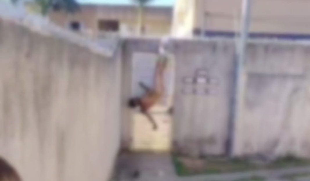 Testemunhas relataram que o homem tentava reencontrar a ex-companheira, embora ela não more mais no local. Mesmo assim, ele tentou escalar o muro e acabou preso no arame da cerca.