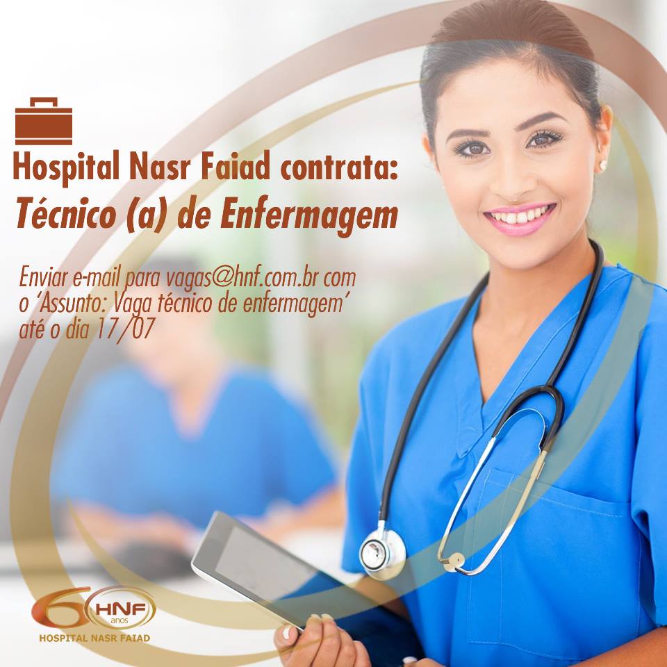 O Hospital Nasr Faid, disponibiliza uma vaga de Técnico de Enfermagem para Catalão e uma vaga de Enfermagem para a cidade de Ipameri (Coren ativo). Os interessados devem encaminhar currículo até a próxima segunda-feira (17), no e-mail: [email protected].