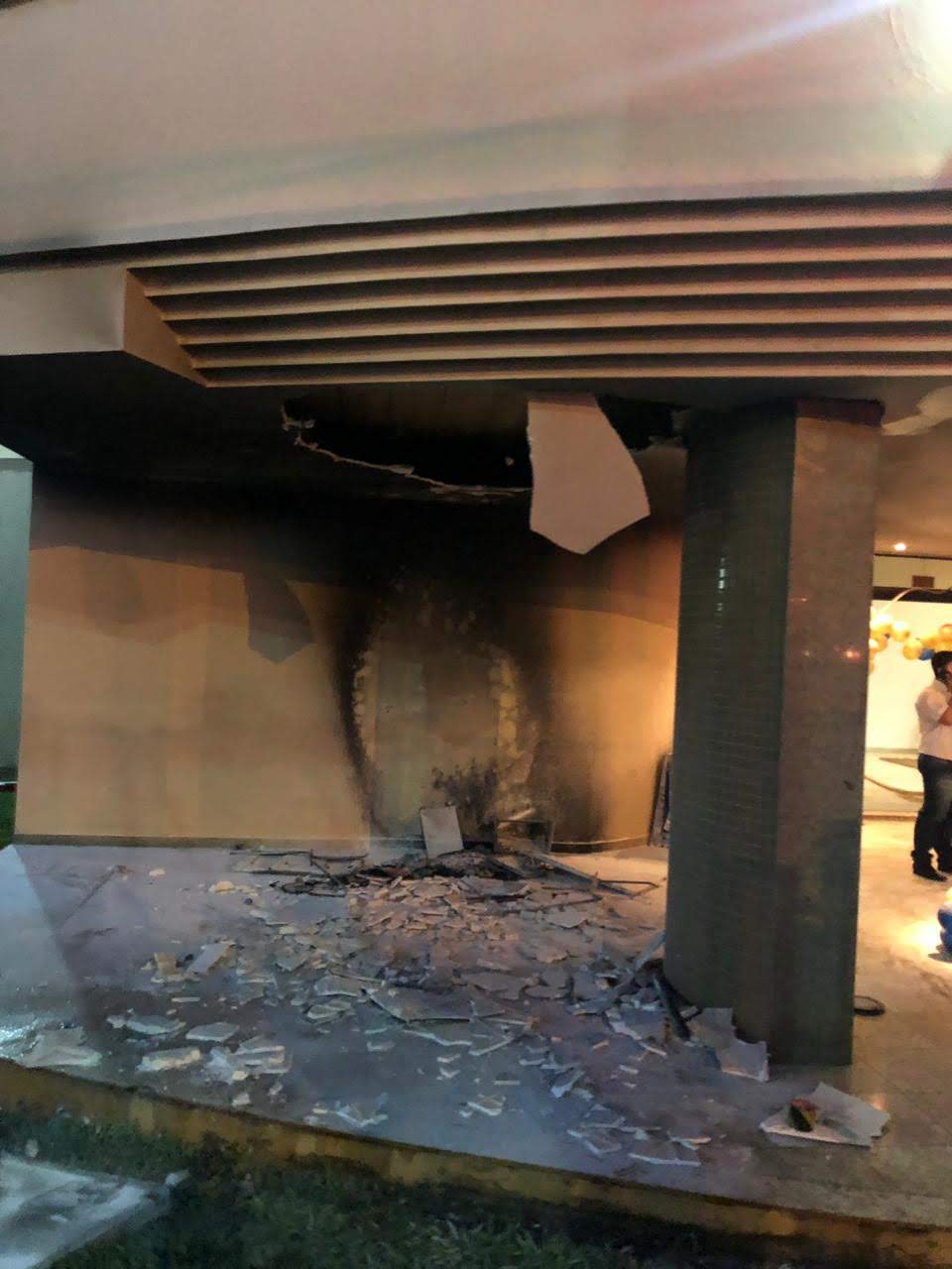 Quando os militares do 10° Batalhão de Bombeiro Militar chegaram ao local, eles apenas realizaram o trabalho de rescaldo e isolamento do local, além da ventilação do anfiteatro com uso de um equipamento para retirar todo o excesso de fumaça que estava concentrada no local.